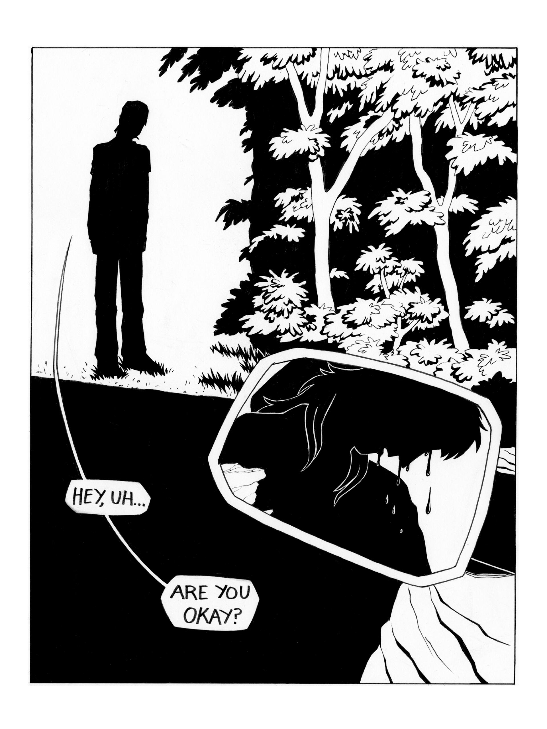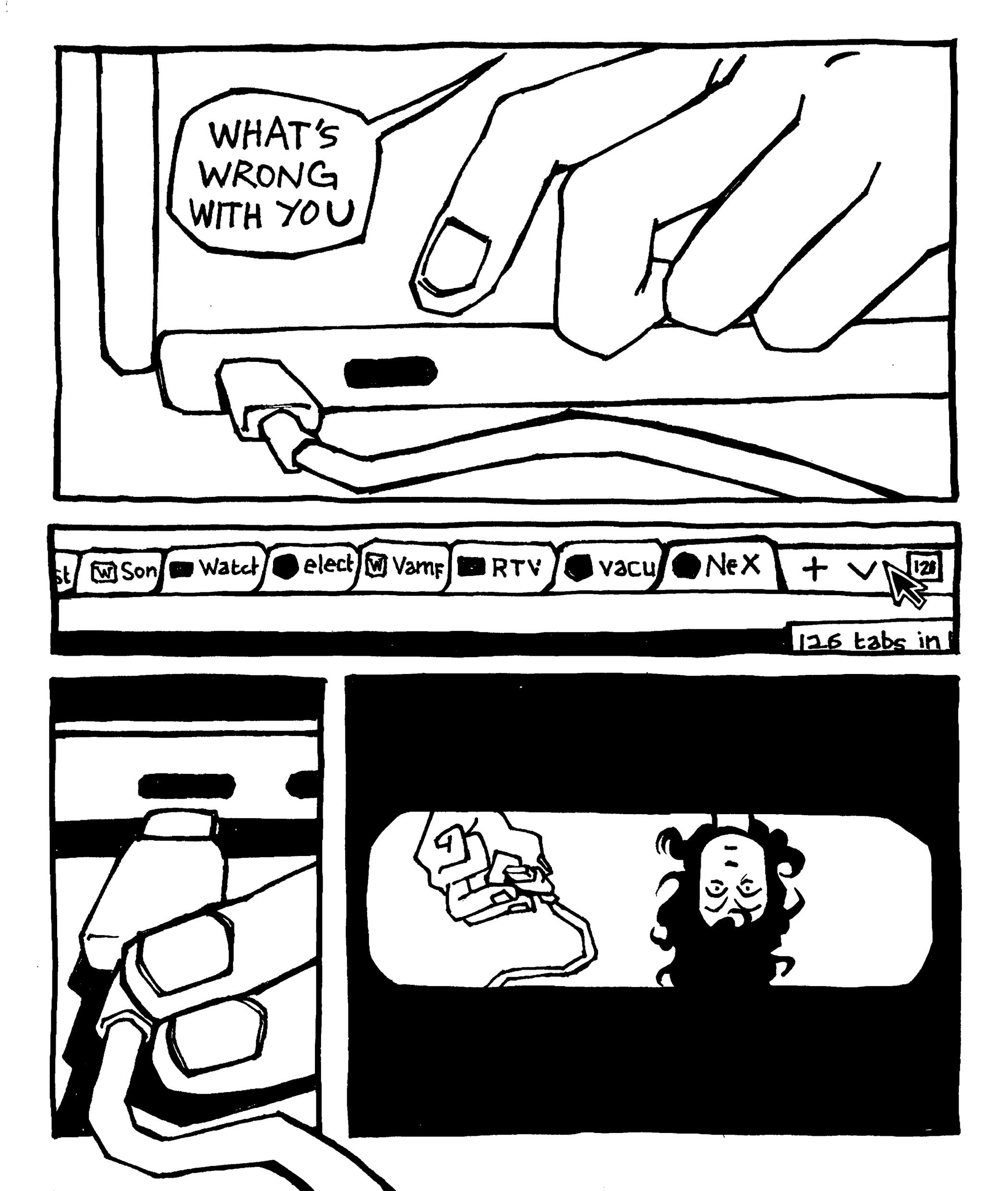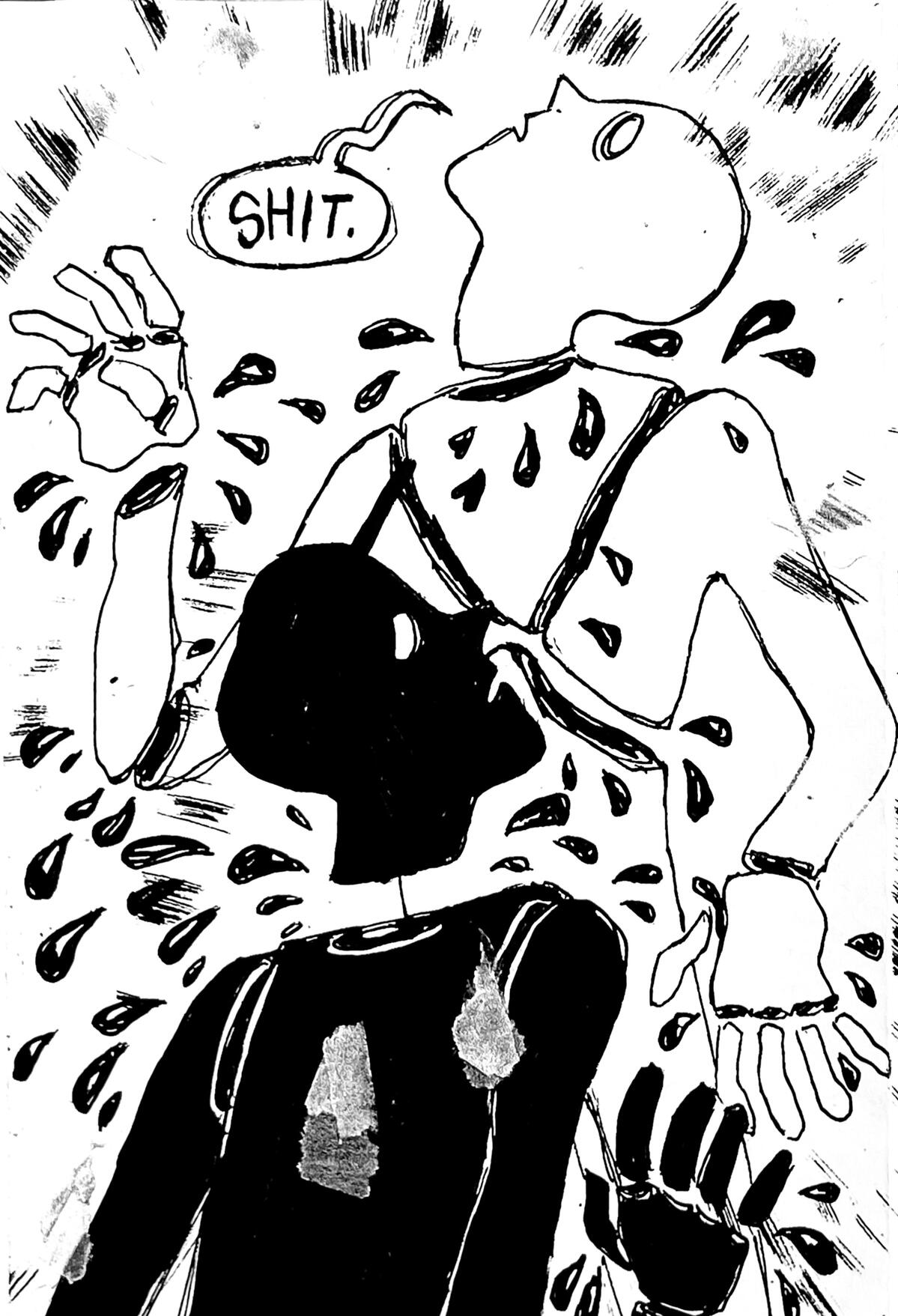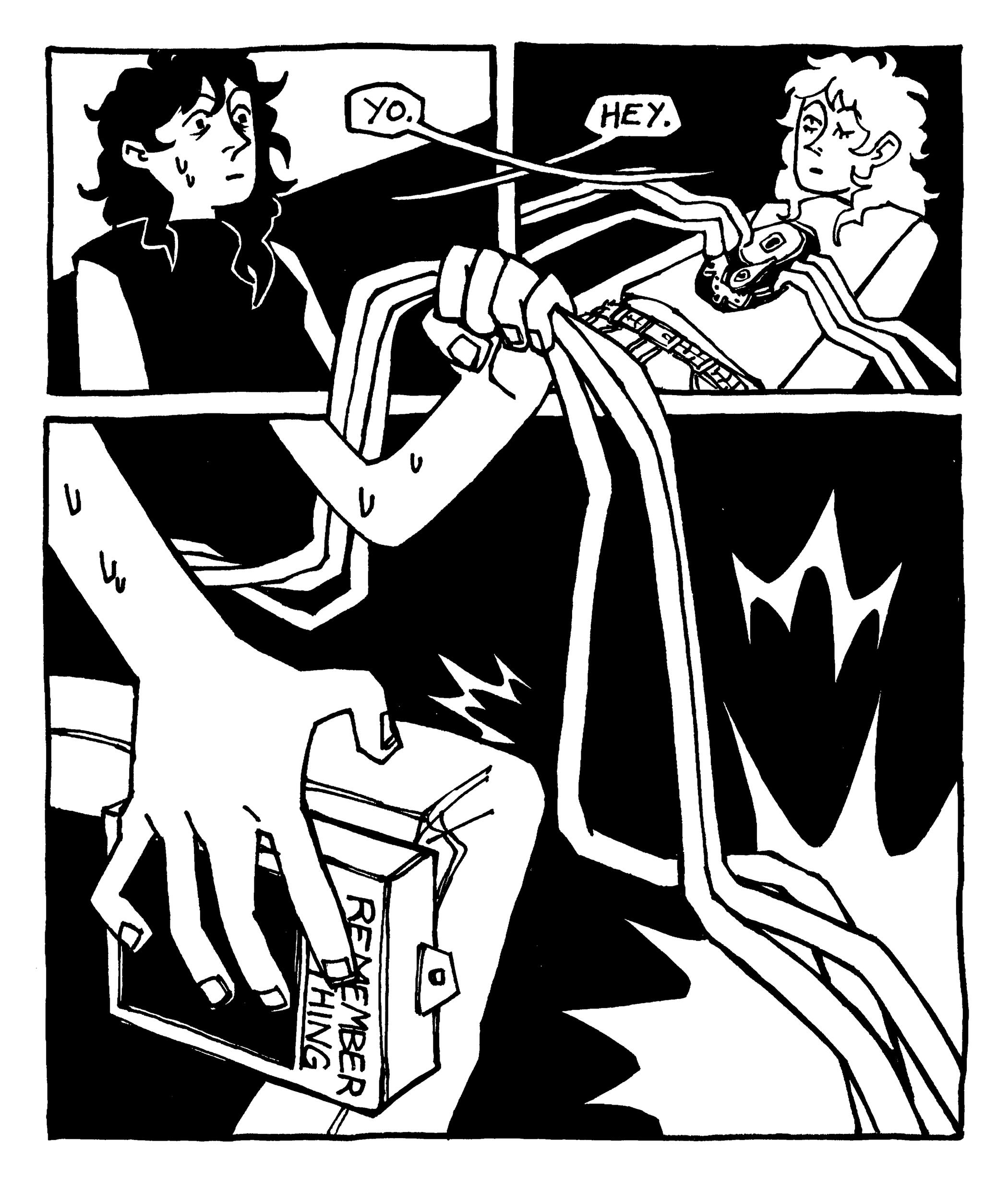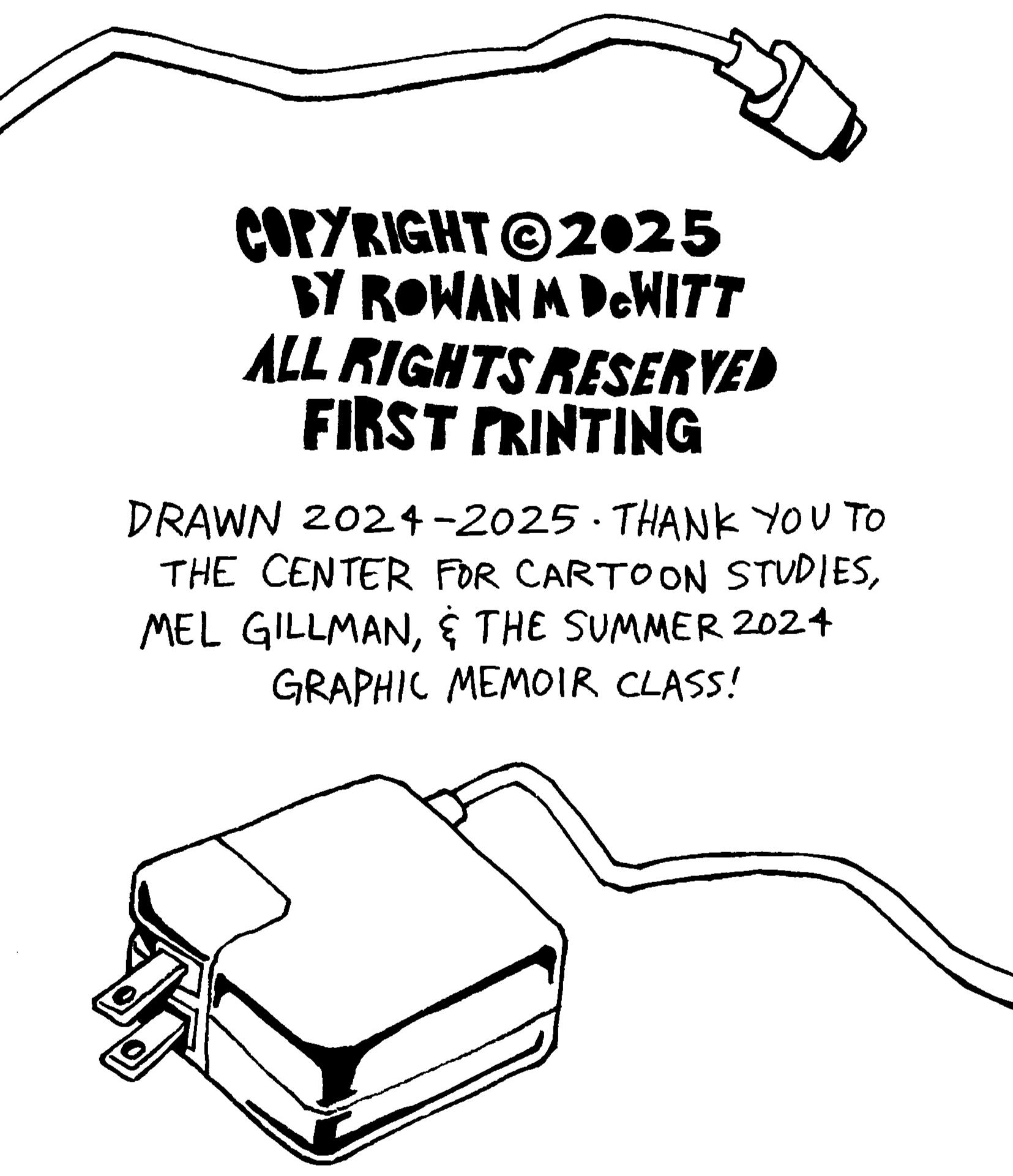 Rowan DeWitt is a comic artist living in New York City. They graduated from Skidmore College with honors in Art and Classics in 2025. At Skidmore, among other activities, they were the Vice President and co-founder of the Skidmore College Zine Club.As a comic artist and zinester they use narratives as a way to explore the world and our place in it, employing many sci-fi, supernatural, and surreal elements to do so. Their art has been described as ‘expressive’ and ‘uncanny yet whimsical’ by friends, as well as ‘I worry if you are happy’ by their mom. They draw inspiration from family movie classics such as Fight Club and a fervid obsession with Dracula.