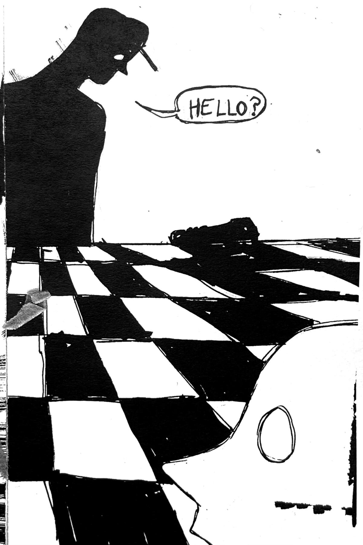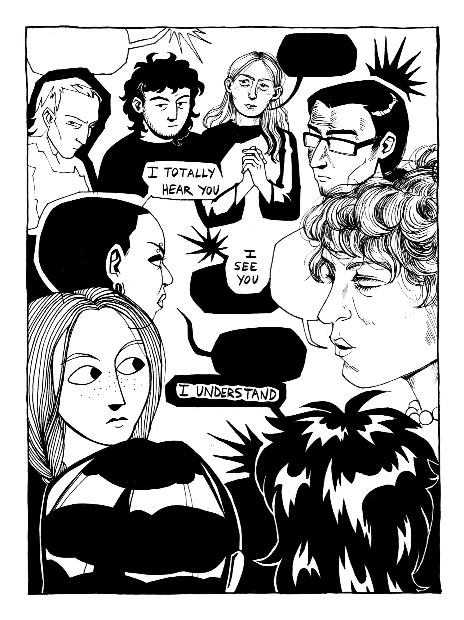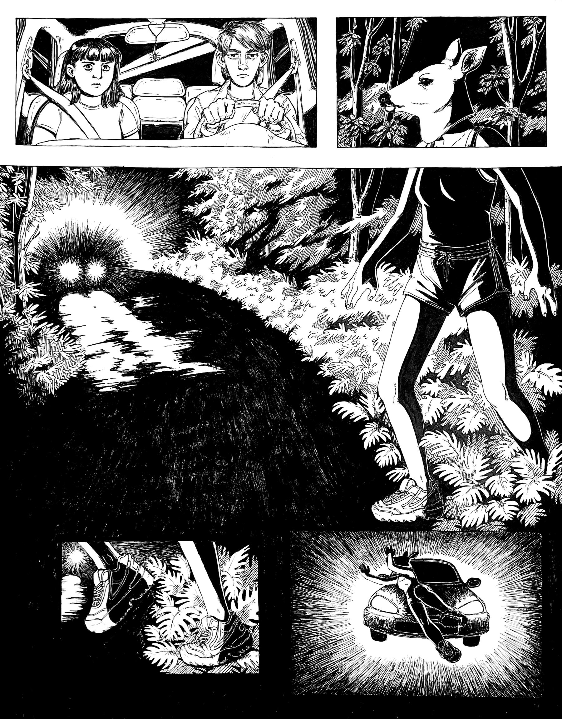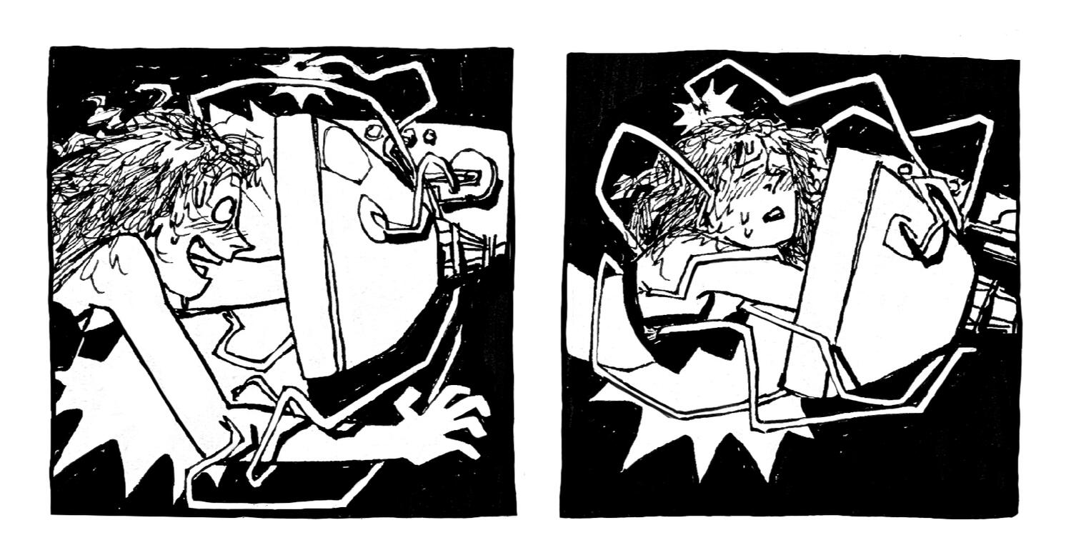 Rowan DeWitt is a comic artist living in New York City. They graduated from Skidmore College with honors in Art and Classics in 2025. At Skidmore, among other activities, they were the Vice President and co-founder of the Skidmore College Zine Club.As a comic artist and zinester they use narratives as a way to explore the world and our place in it, employing many sci-fi, supernatural, and surreal elements to do so. Their art has been described as ‘expressive’ and ‘uncanny yet whimsical’ by friends, as well as ‘I worry if you are happy’ by their mom. They draw inspiration from family movie classics such as Fight Club and a fervid obsession with Dracula.