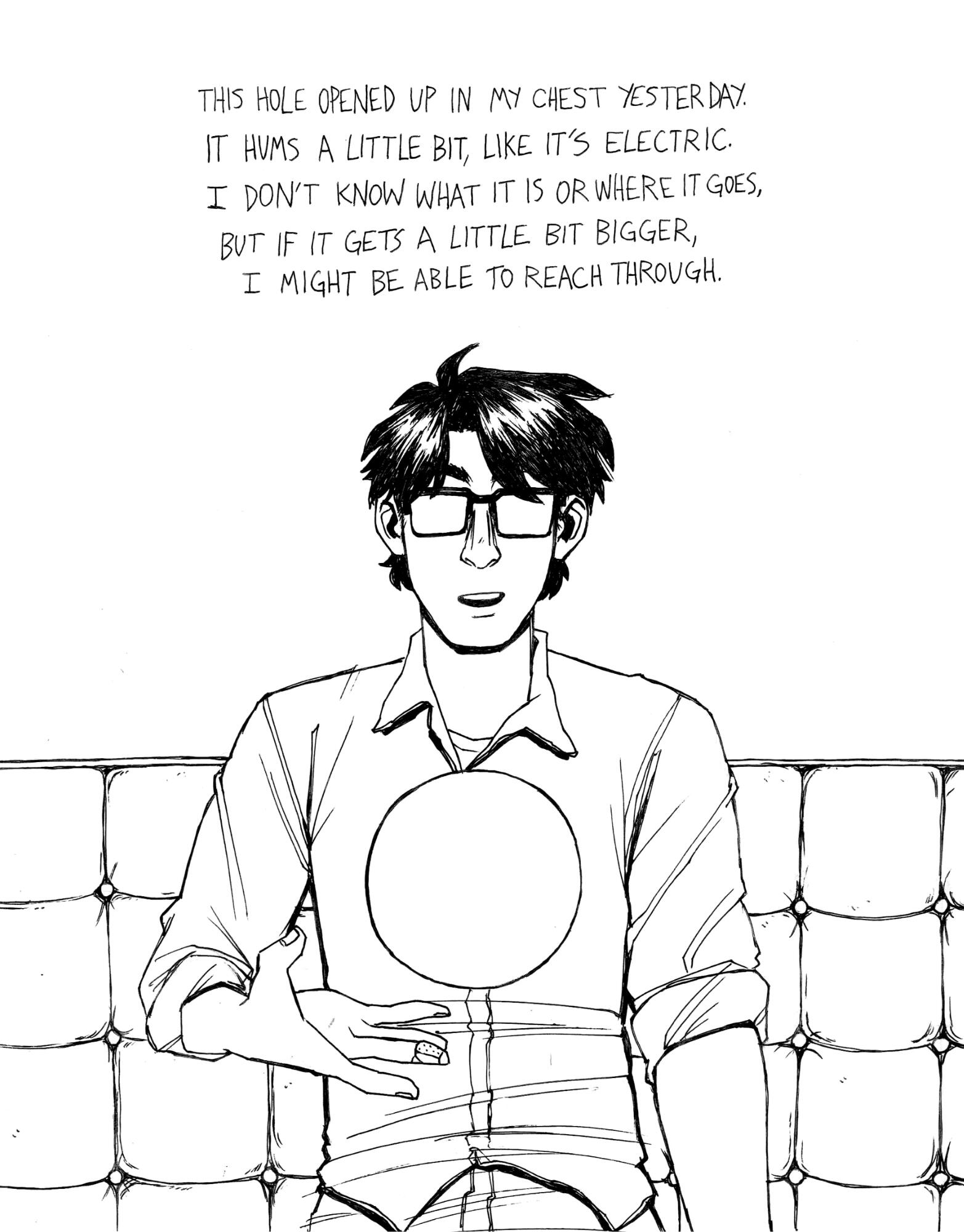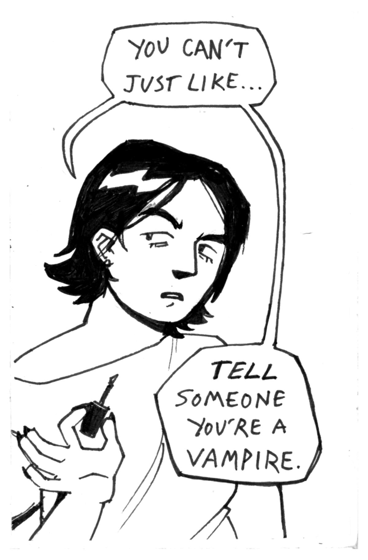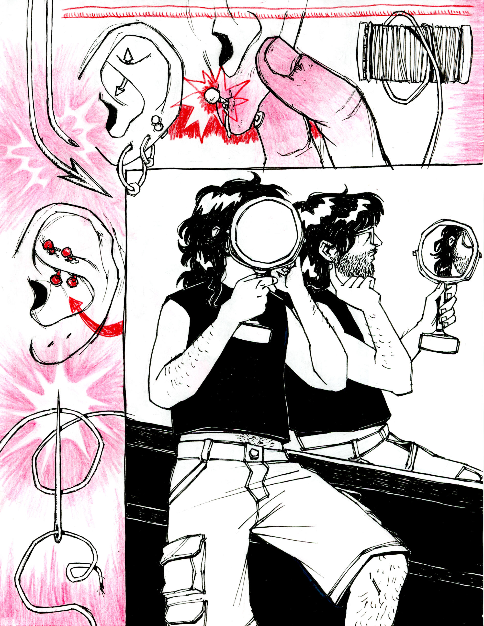Rowan DeWitt is a comic artist living in New York City. They graduated from Skidmore College with honors in Art and Classics in 2025. At Skidmore, among other activities, they were the Vice President and co-founder of the Skidmore College Zine Club.As a comic artist and zinester they use narratives as a way to explore the world and our place in it, employing many sci-fi, supernatural, and surreal elements to do so. Their art has been described as ‘expressive’ and ‘uncanny yet whimsical’ by friends, as well as ‘I worry if you are happy’ by their mom. They draw inspiration from family movie classics such as Fight Club and a fervid obsession with Dracula.